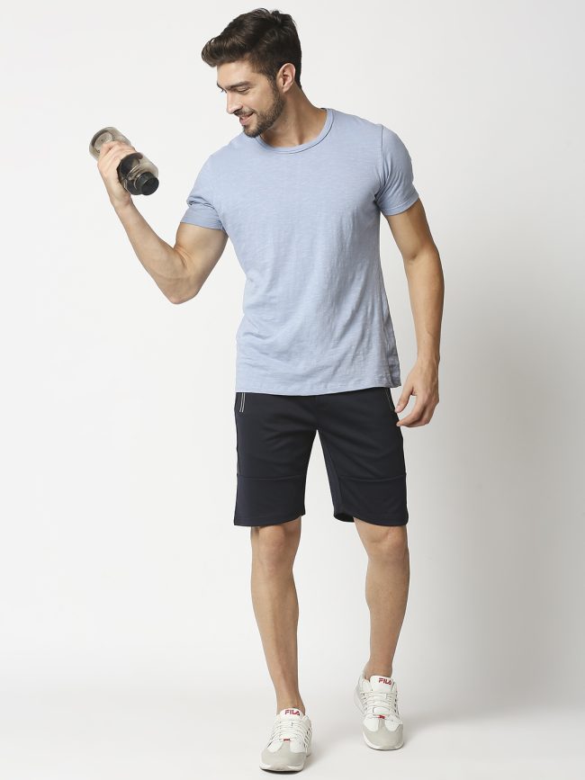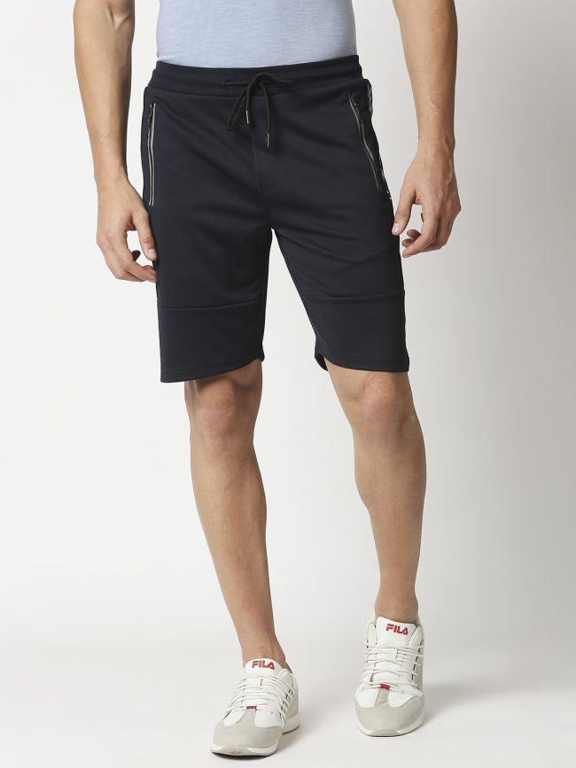 Manaca Mens Navy Blue Solid Regular Fit Polyster Cotton Shorts – Pack of 1