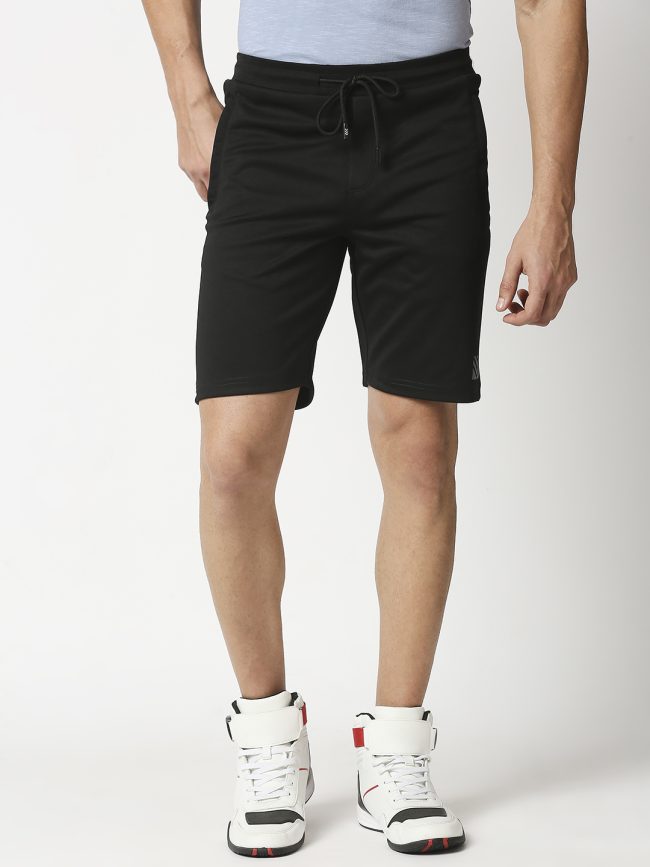 Manaca Mens Black Solid Regular Fit Polyster Cotton Shorts – Pack of 1
