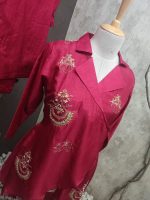 Pure Dola silk Co-ord set straight beautiful cut top with side curve. Pure zardosi and sequence handwork and inner mulmul.