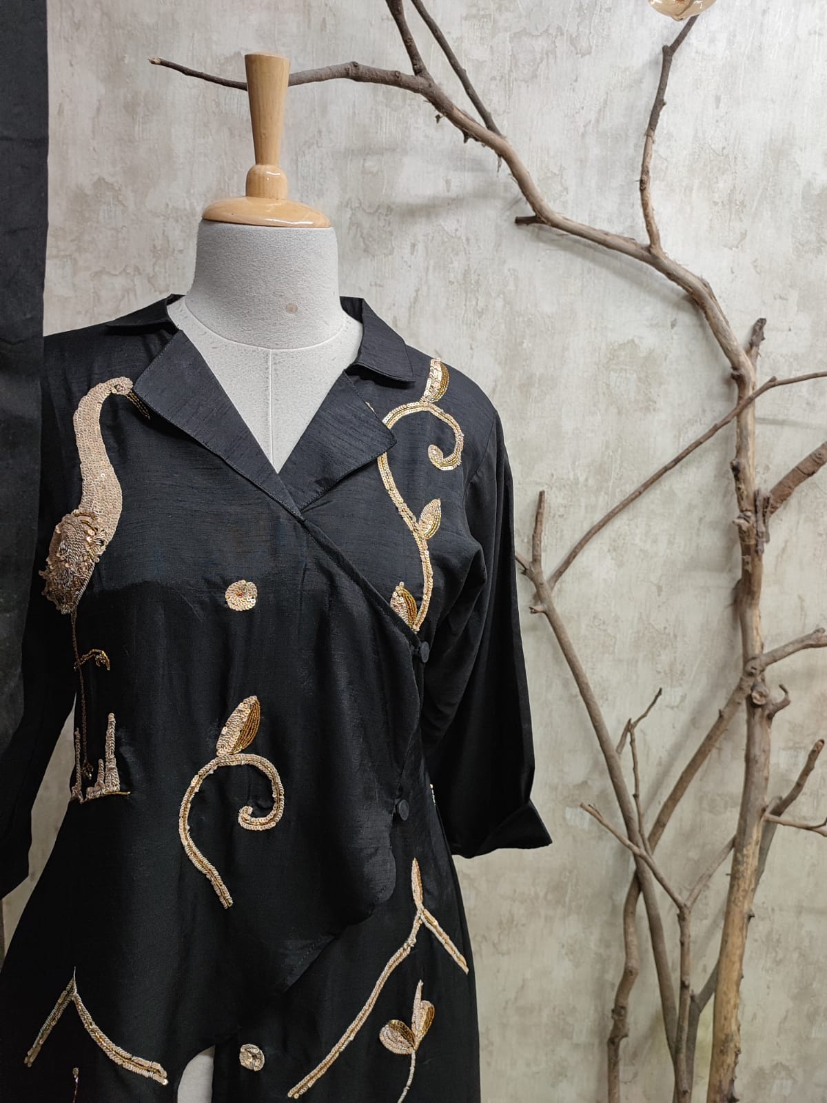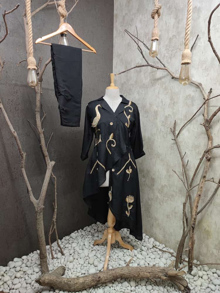 Pure Dola silk Co-ord set straight beautiful cut top with side curve. Pure zardosi and sequence handwork and inner mulmul.