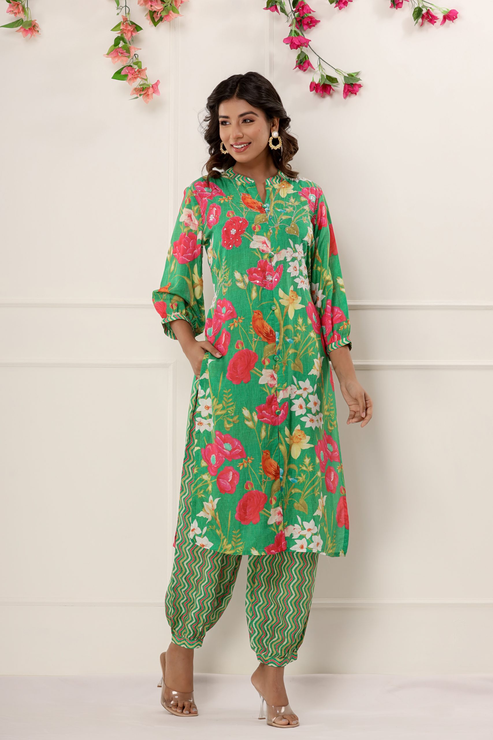 Fusion Wear – Floral Printed Kurta with Salwar