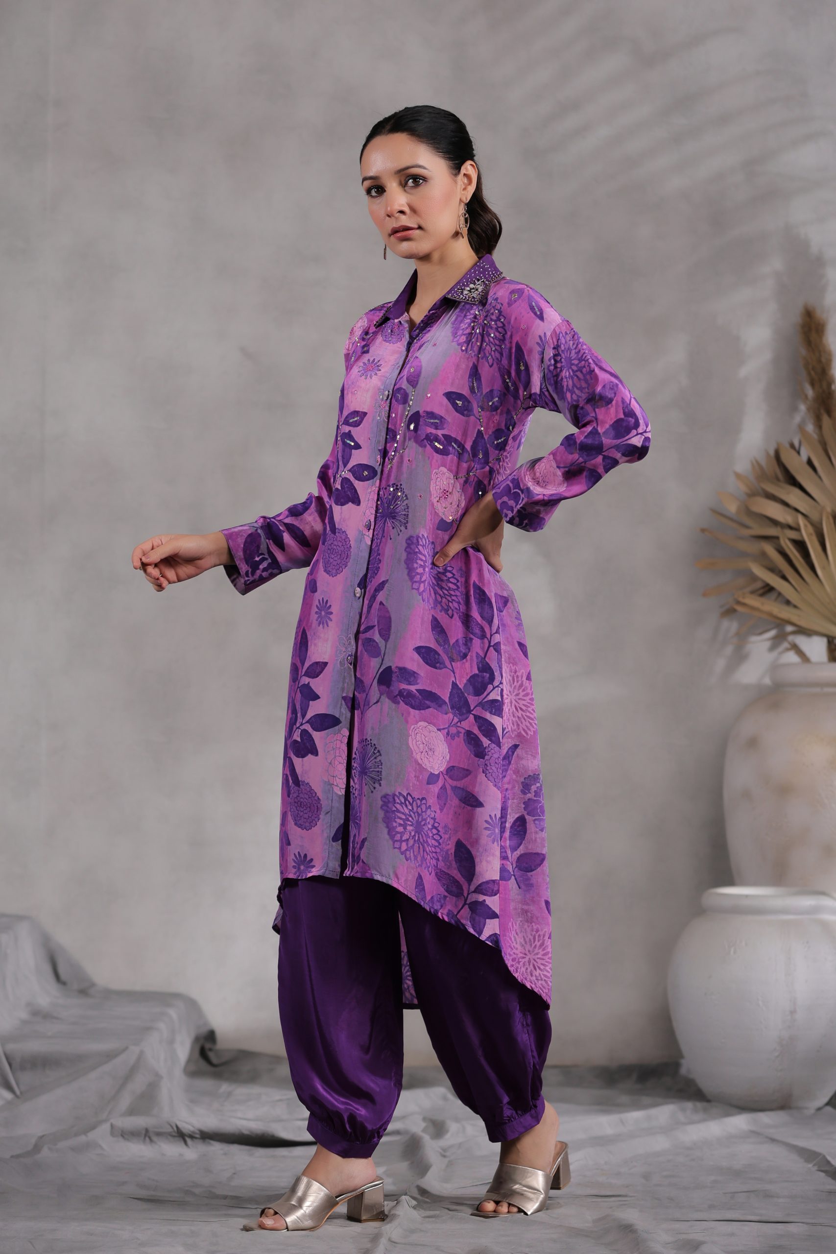 Fusion Wear – Floral Printed Kurta Pajama Set