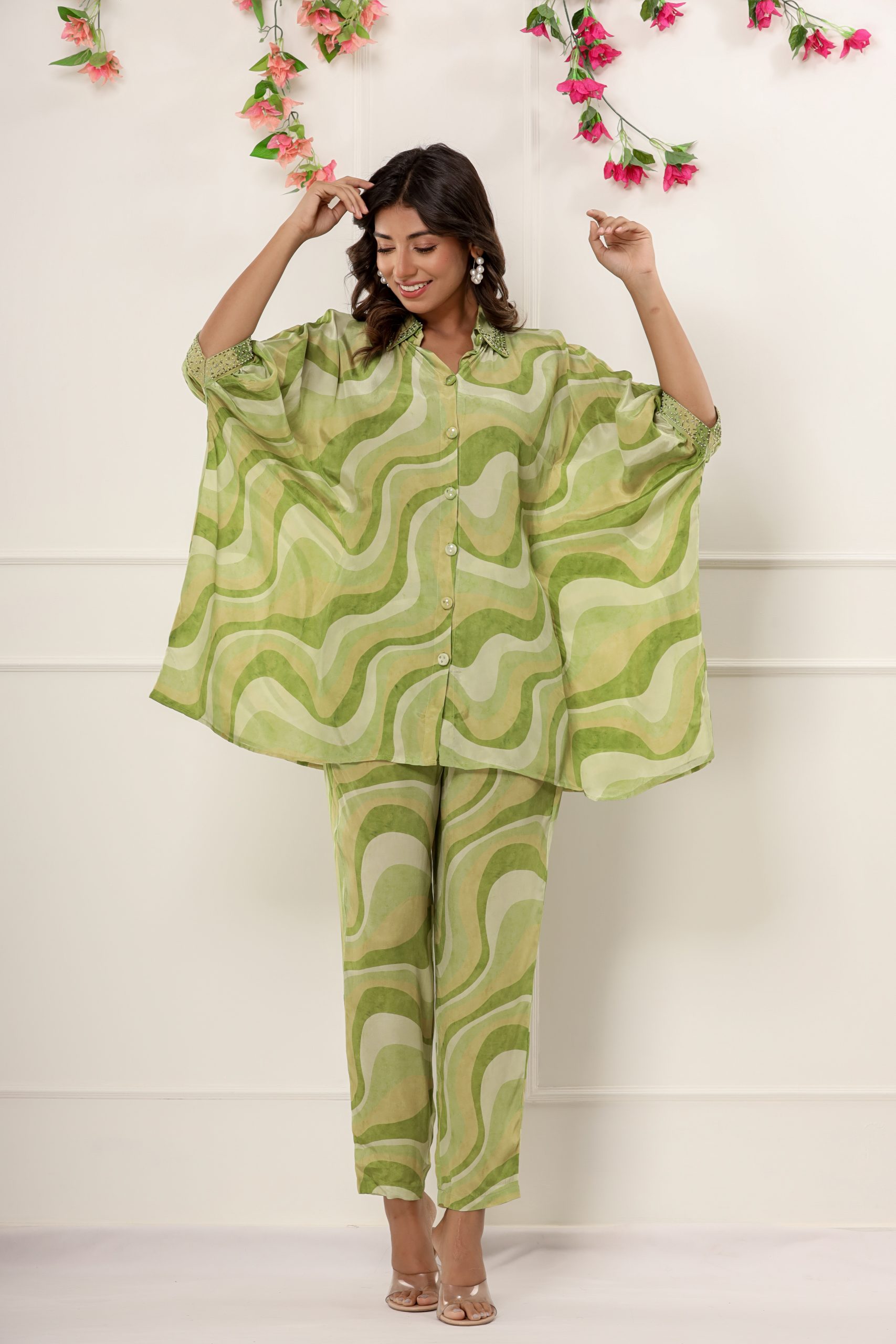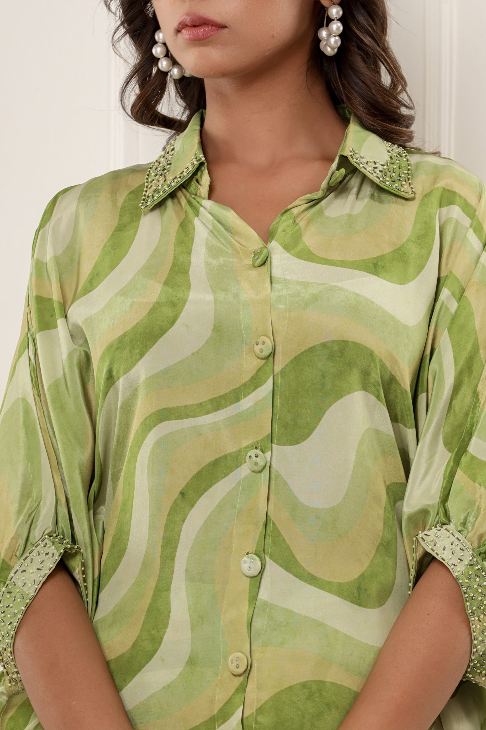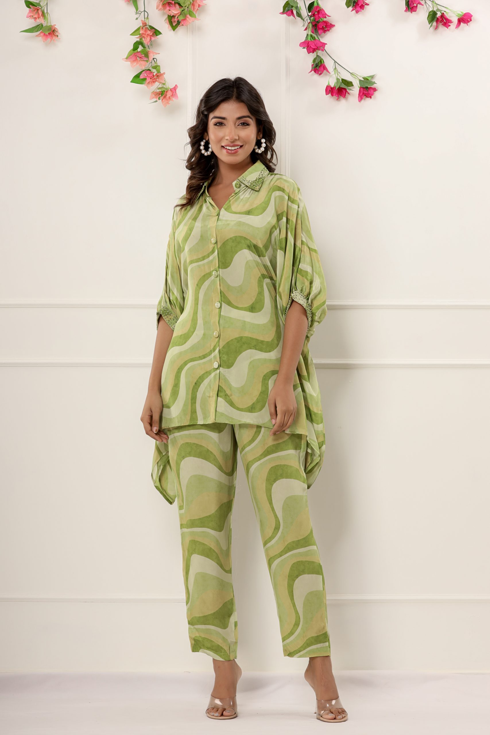 This style is fresh and vibrant. The top has delicate handwork on the collar and the silhouette fits in perfectly to bring out that extra oomph!