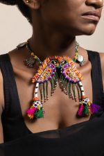 Exclusive handcrafted choker with our traditional Indian motifs and mirror hanging, specially designed for Navratri and Durga Pooja festivals. Lightweight and easy to carry.