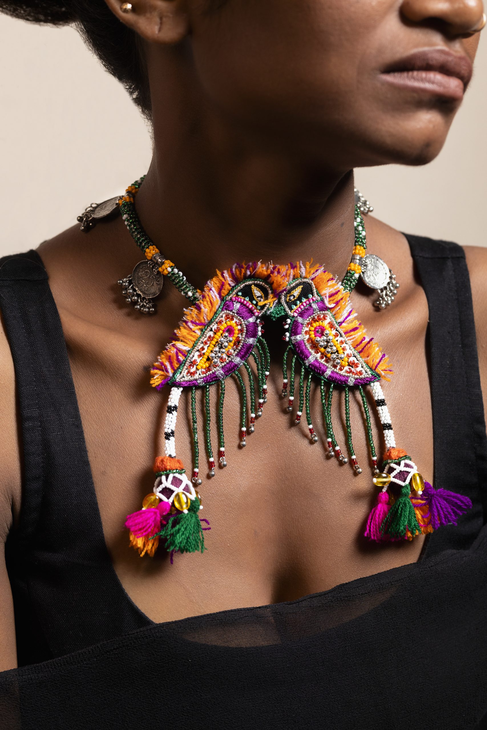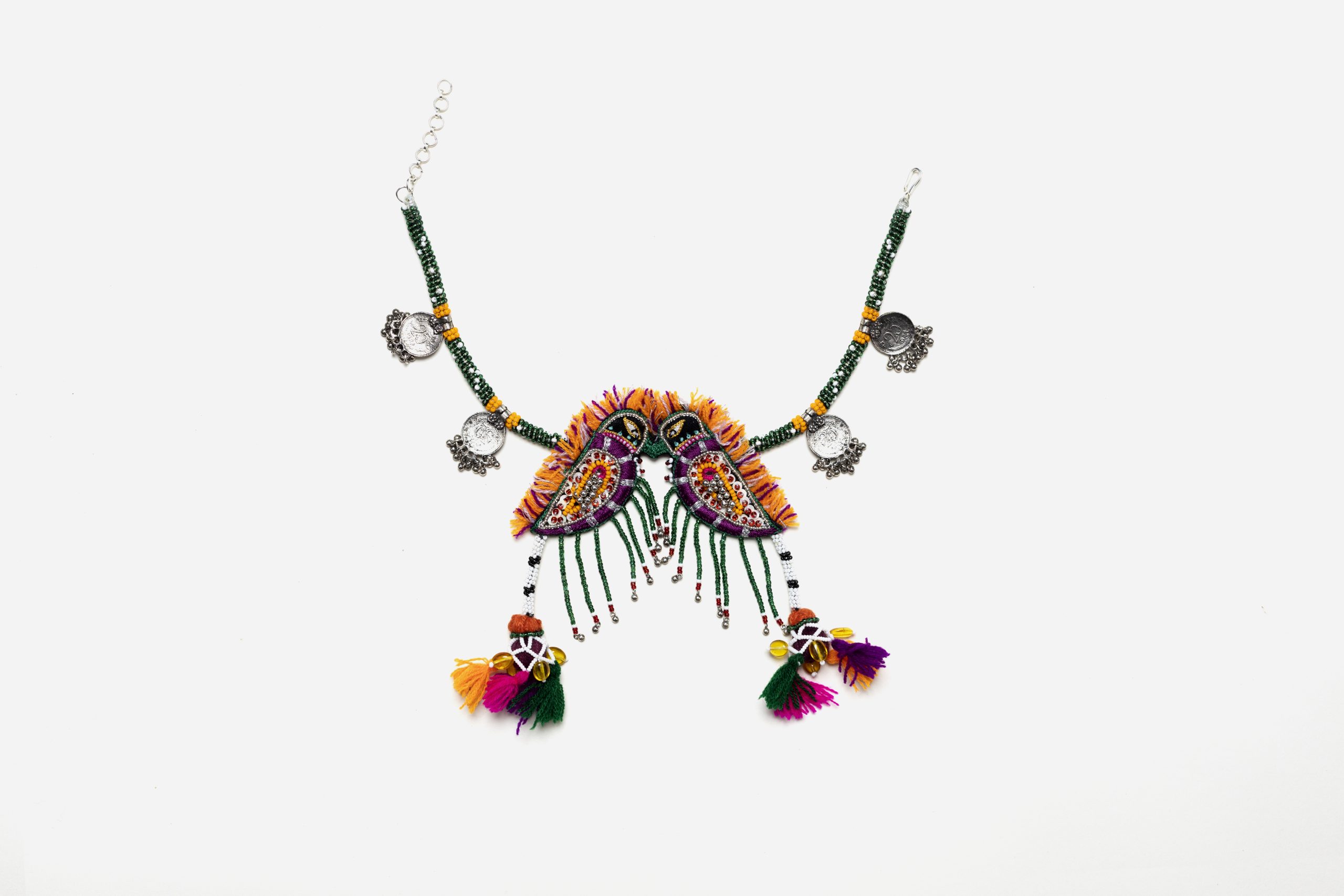 Material: Khadi Fabric, Silk Threads, Beads, Wool, Oxidised Metal