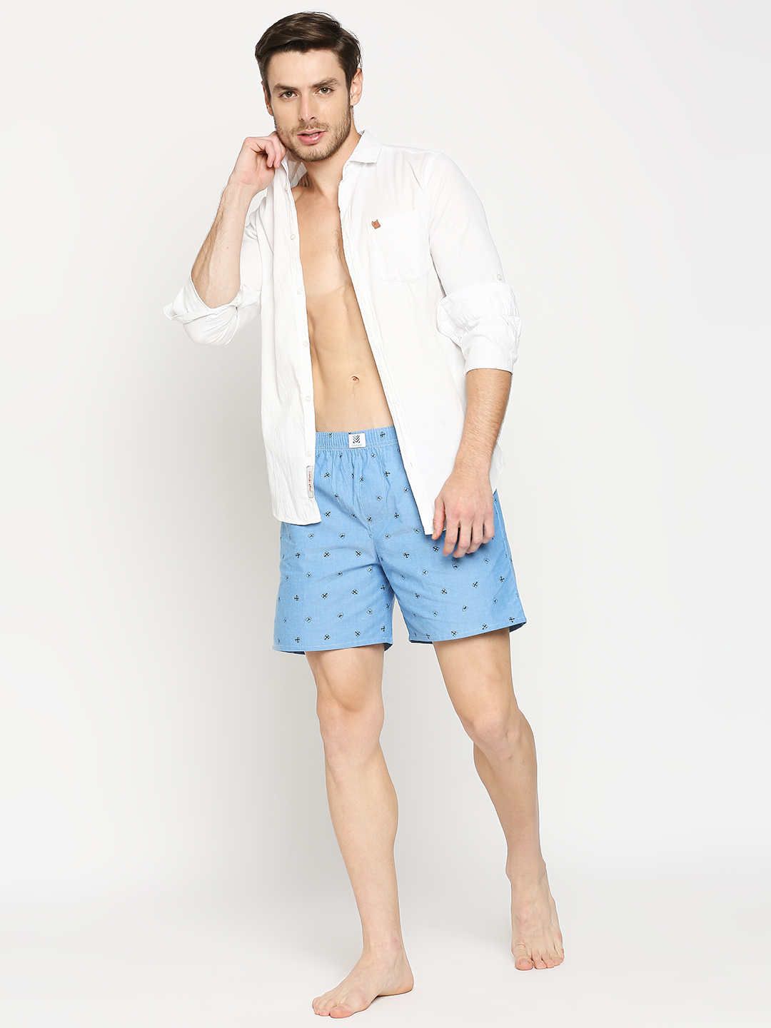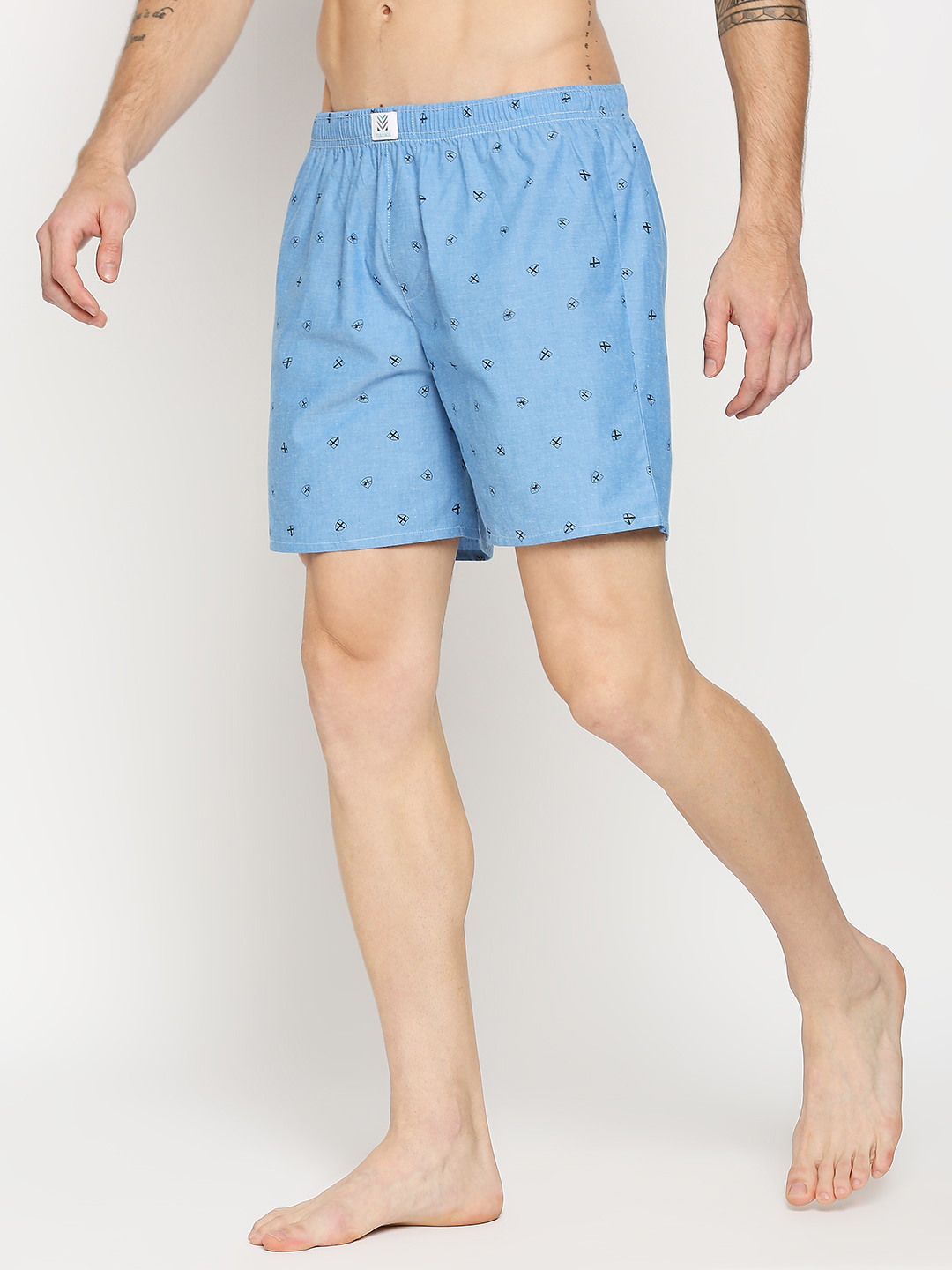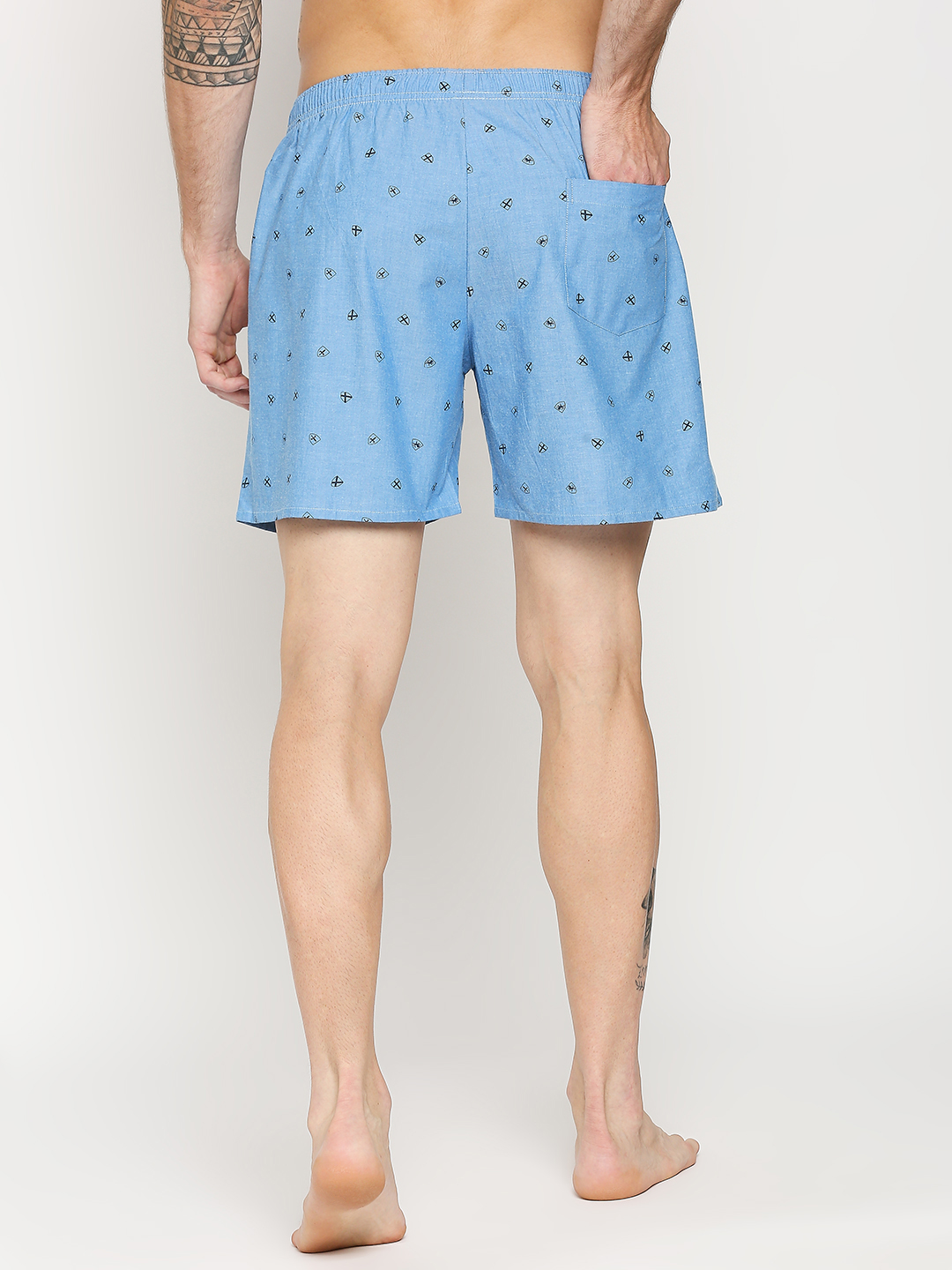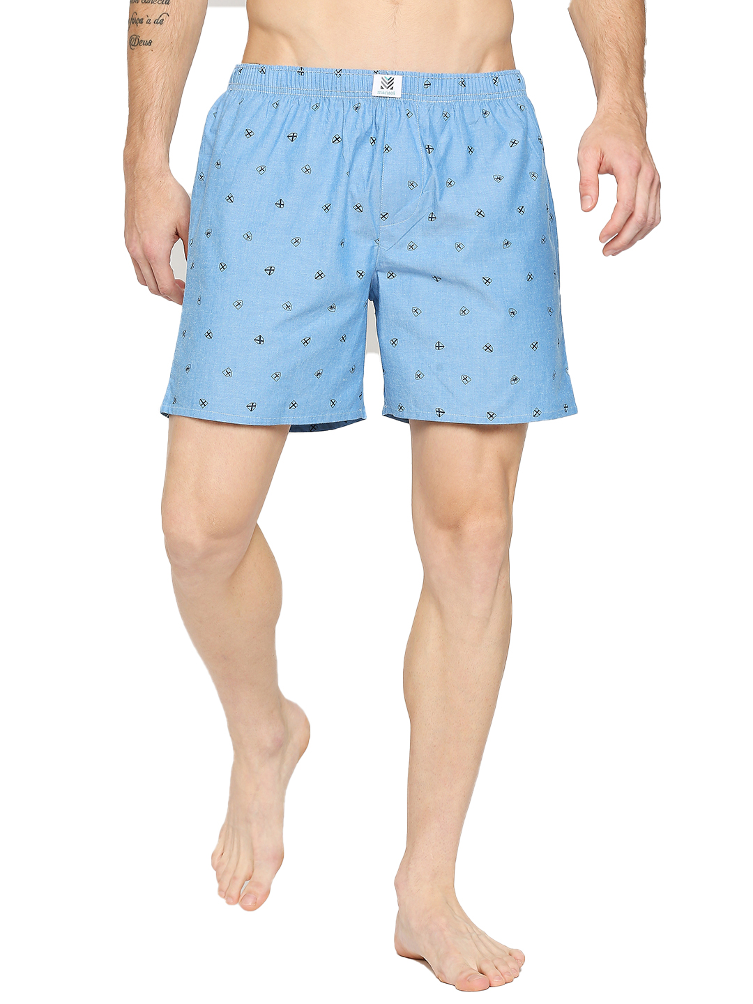 Manaca Mens Cotton Printed Boxer Shorts – Sea Blue