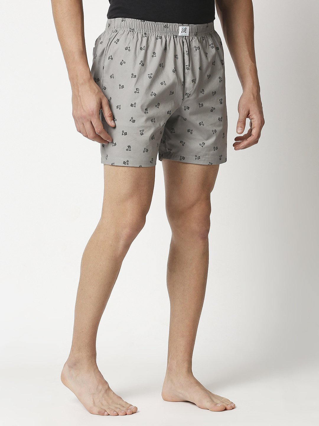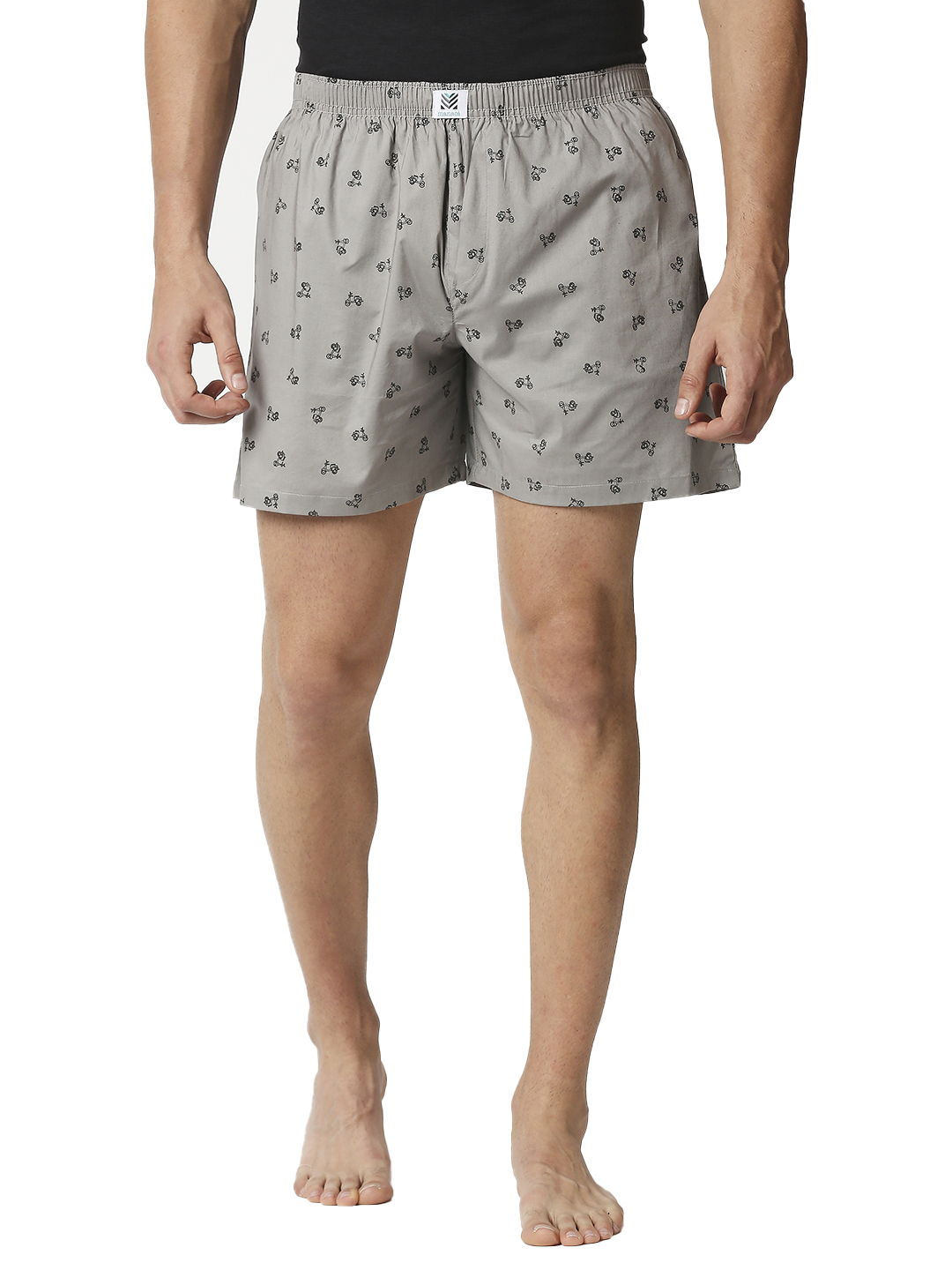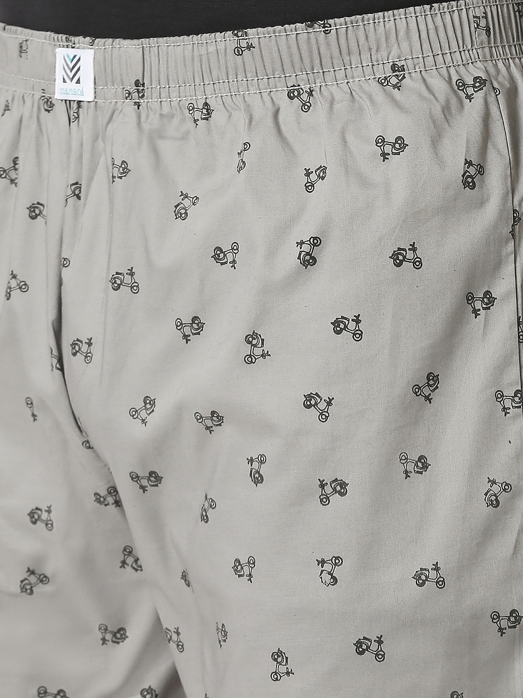 Manaca Mens Little Vespa Cotton Printed Boxer Shorts – Grey