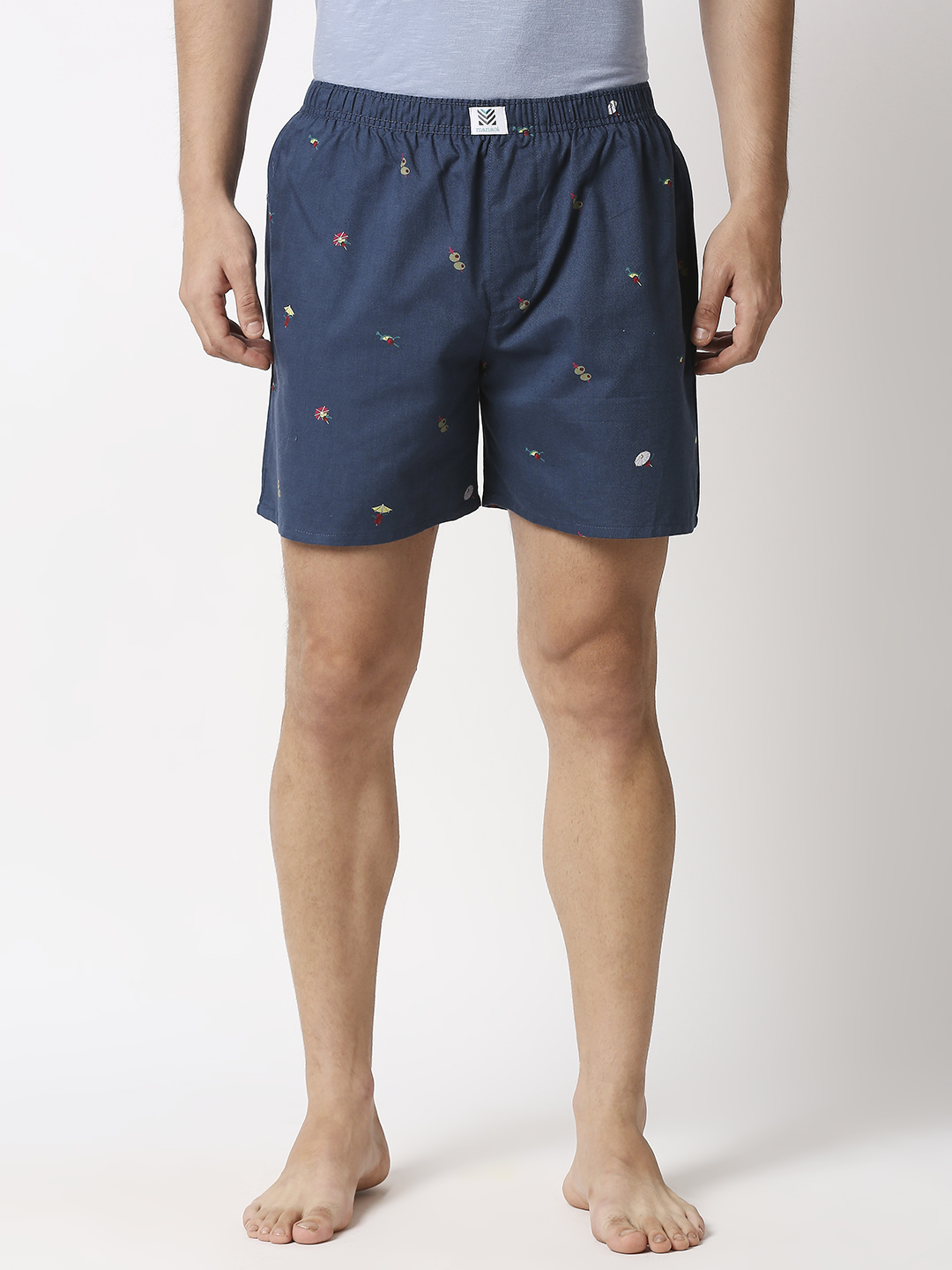 Manaca Mens Little Vespa Cotton Printed Boxer Shorts – Navy Blue