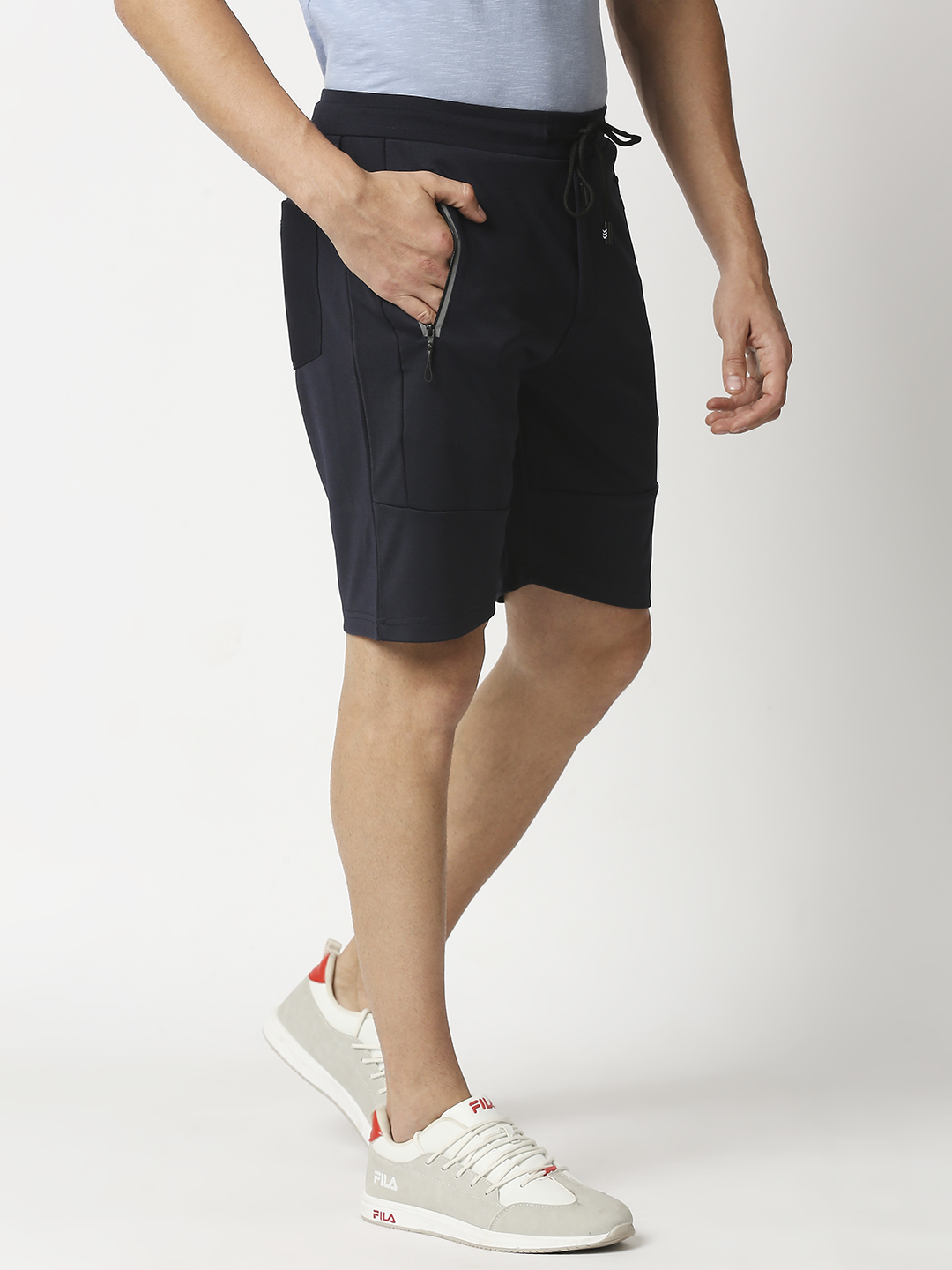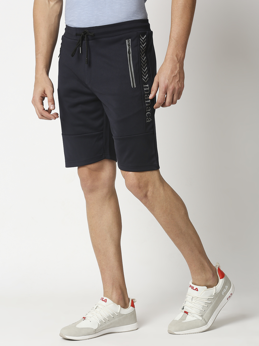 Manaca Mens Navy Blue Solid Regular Fit Polyster Cotton Shorts – Pack of 1
