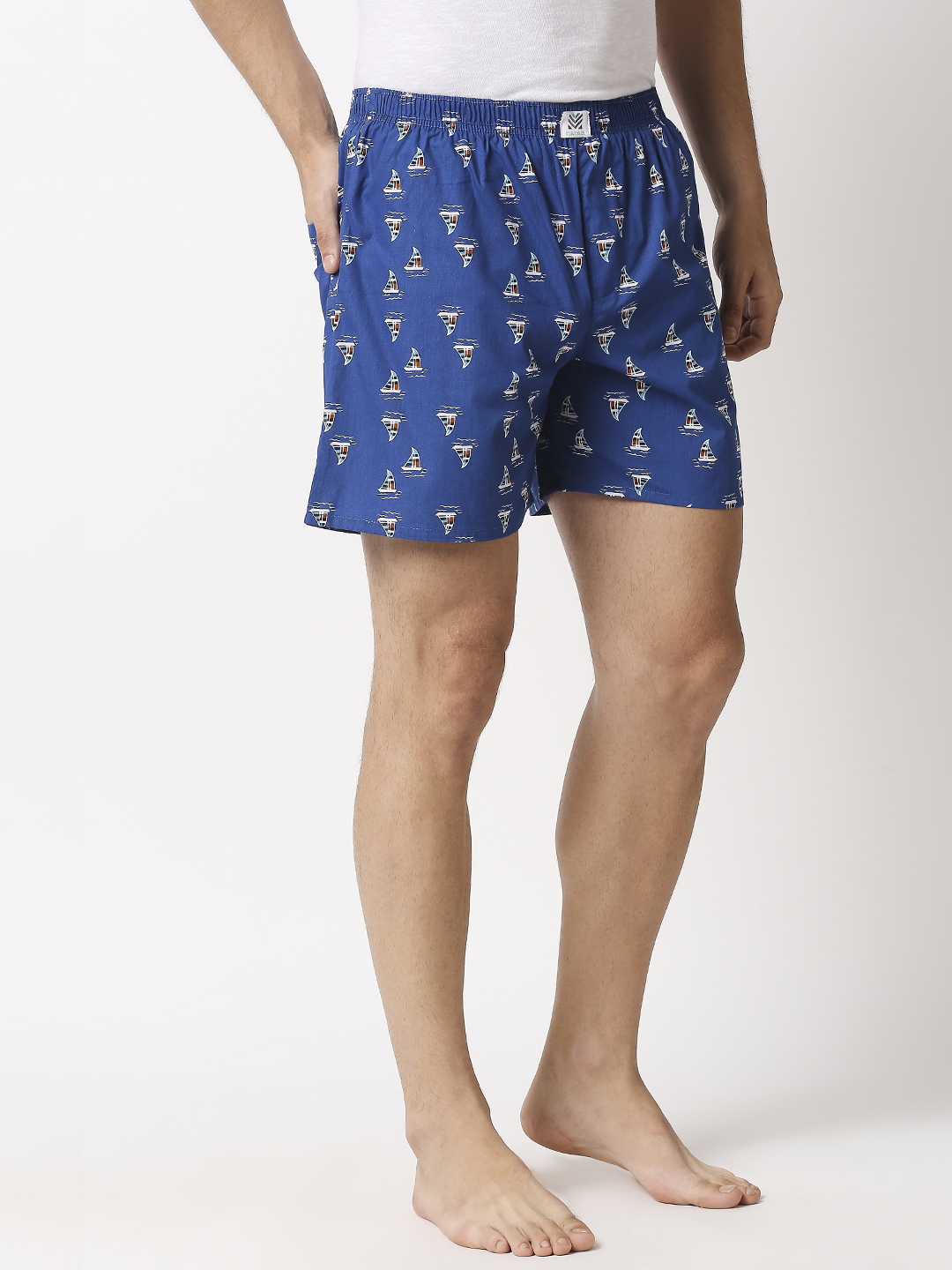 Manaca Mens Ship away Cotton Printed Boxer Shorts – Navy Blue