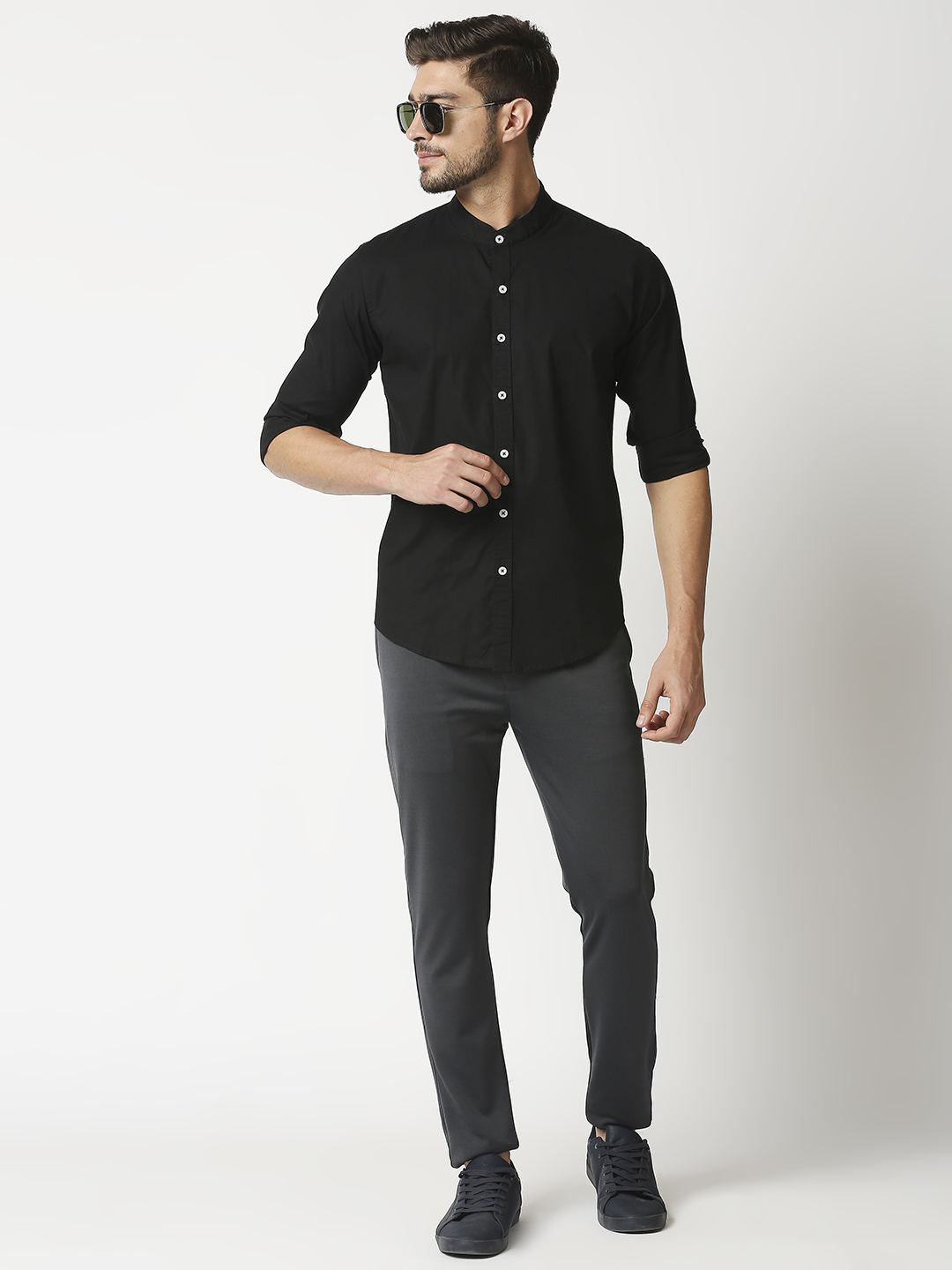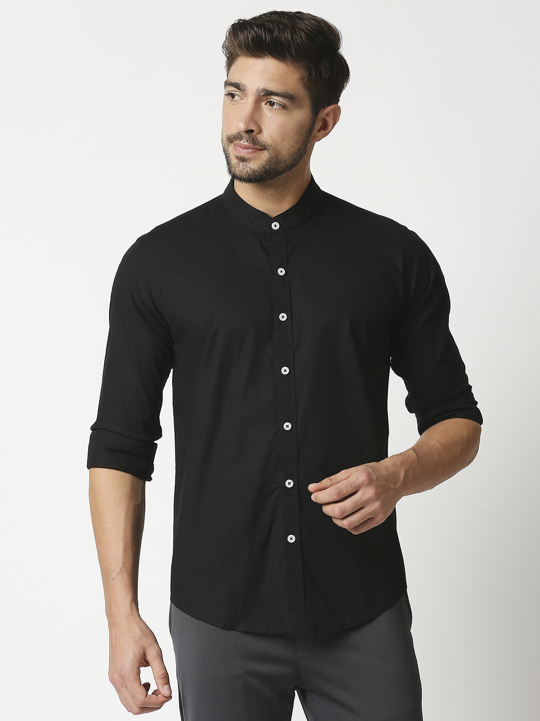Be the first to review “Mandarin Collar Plain Shirt – Black”