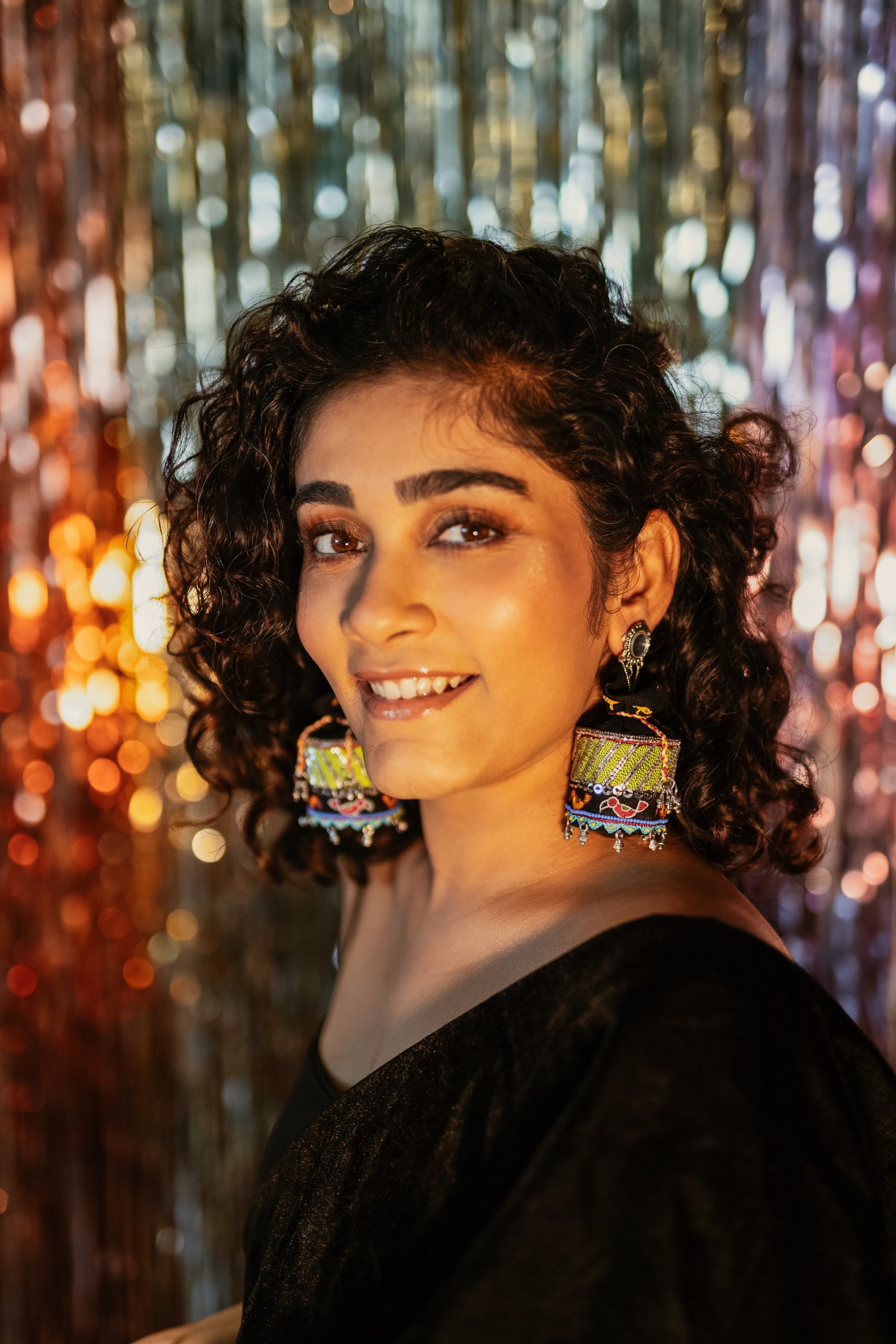 Potli Earrings with Leheriya & Sparrow Design- Kaala Khatta