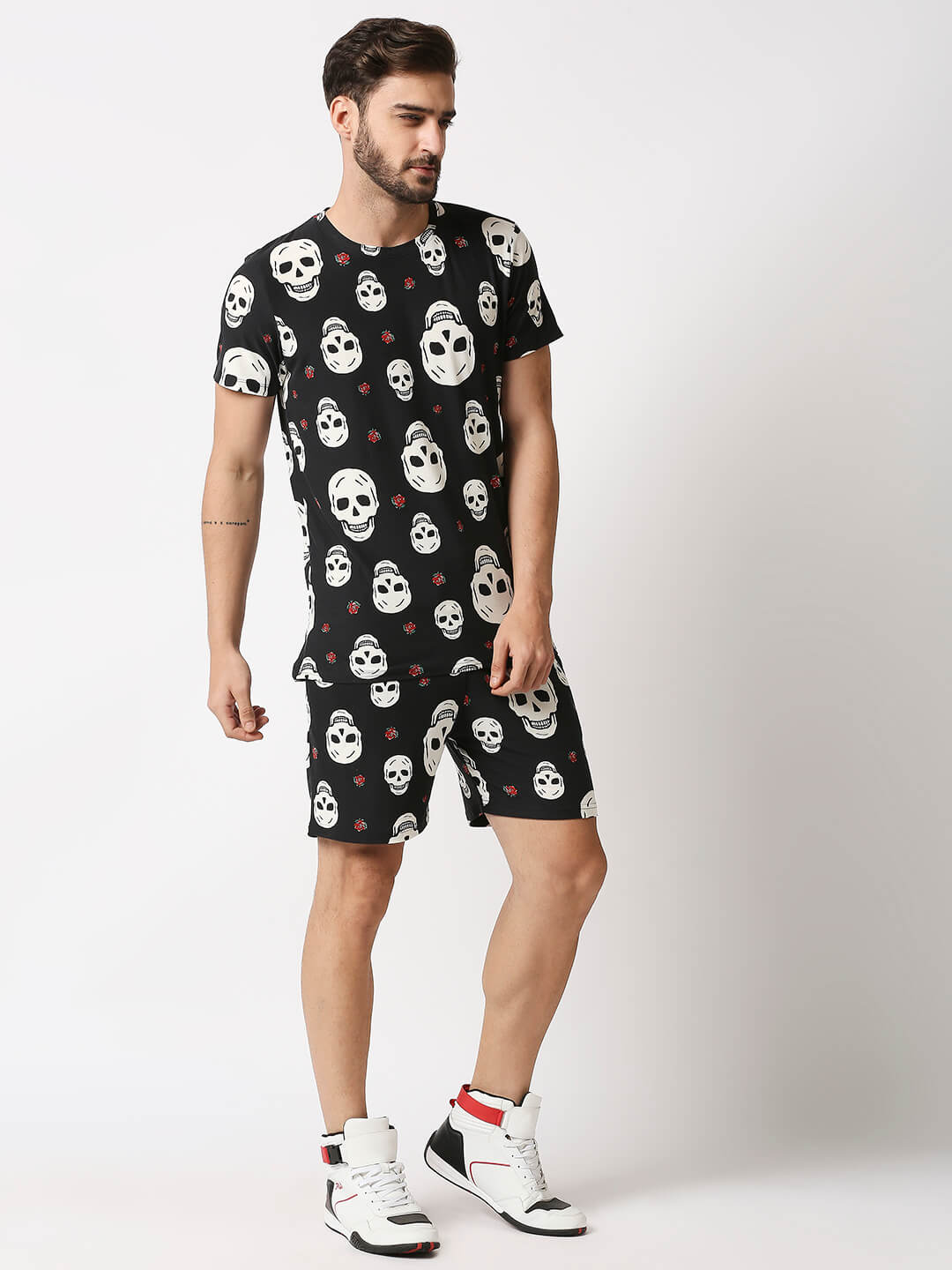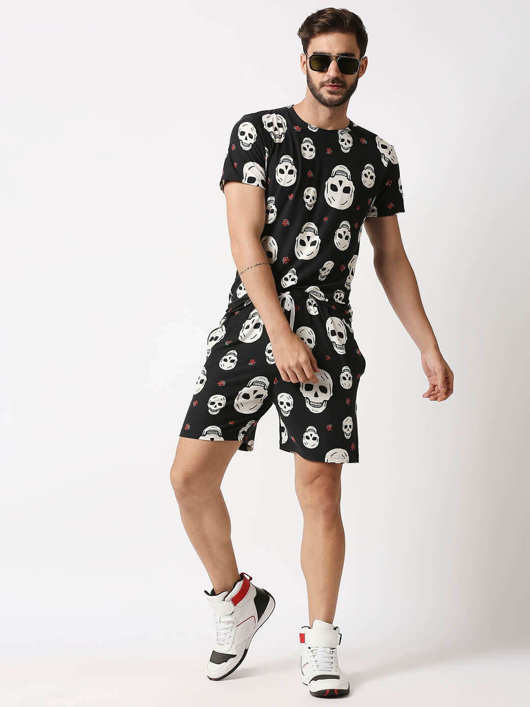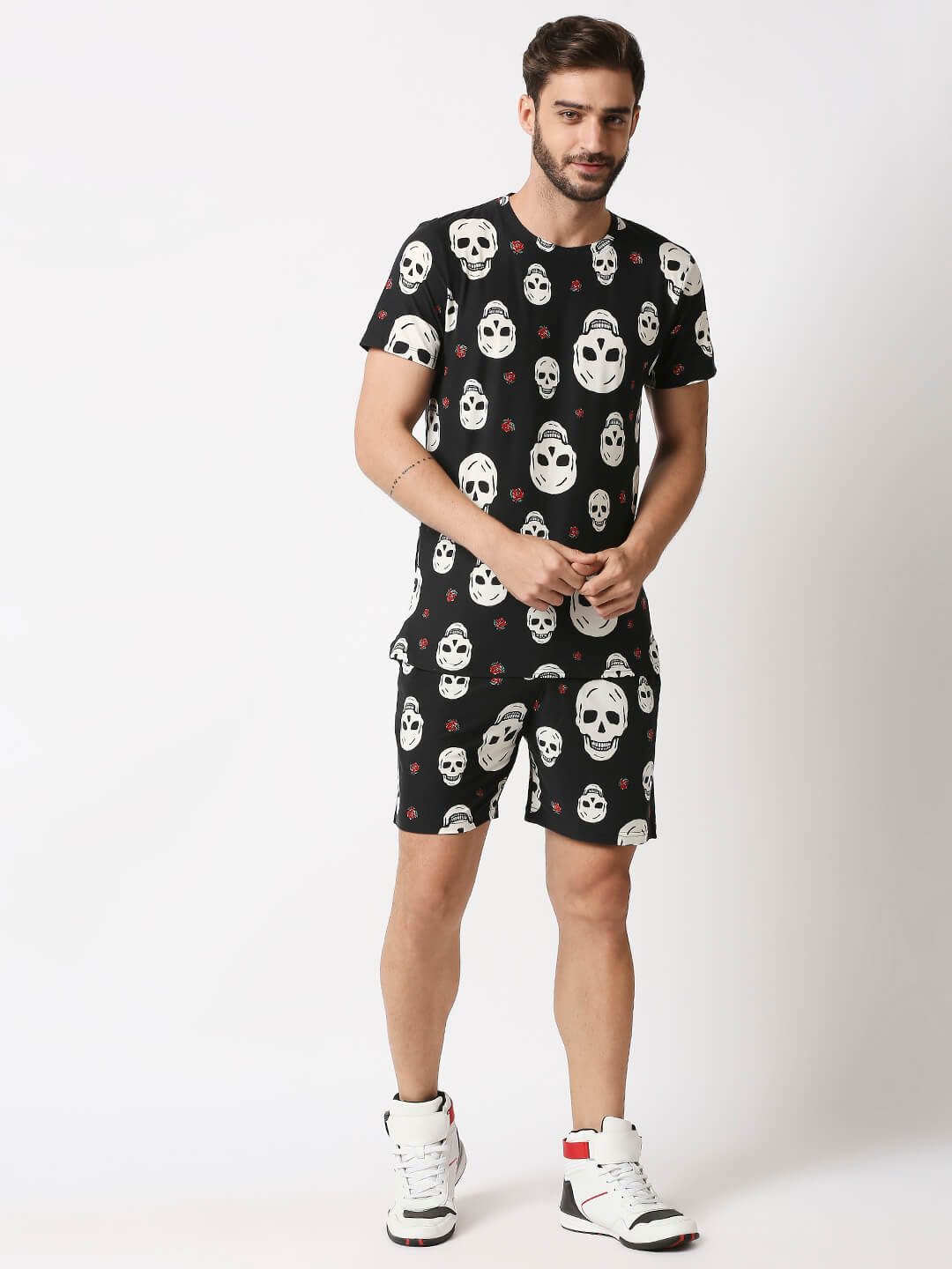 Treat yourself to a night of sweet dreams in our pure organic cotton tee & shorts set. Regular Fit. The short bottom has an elasticated waist for your comfort. An all-over print nightwear or printed nightwear.