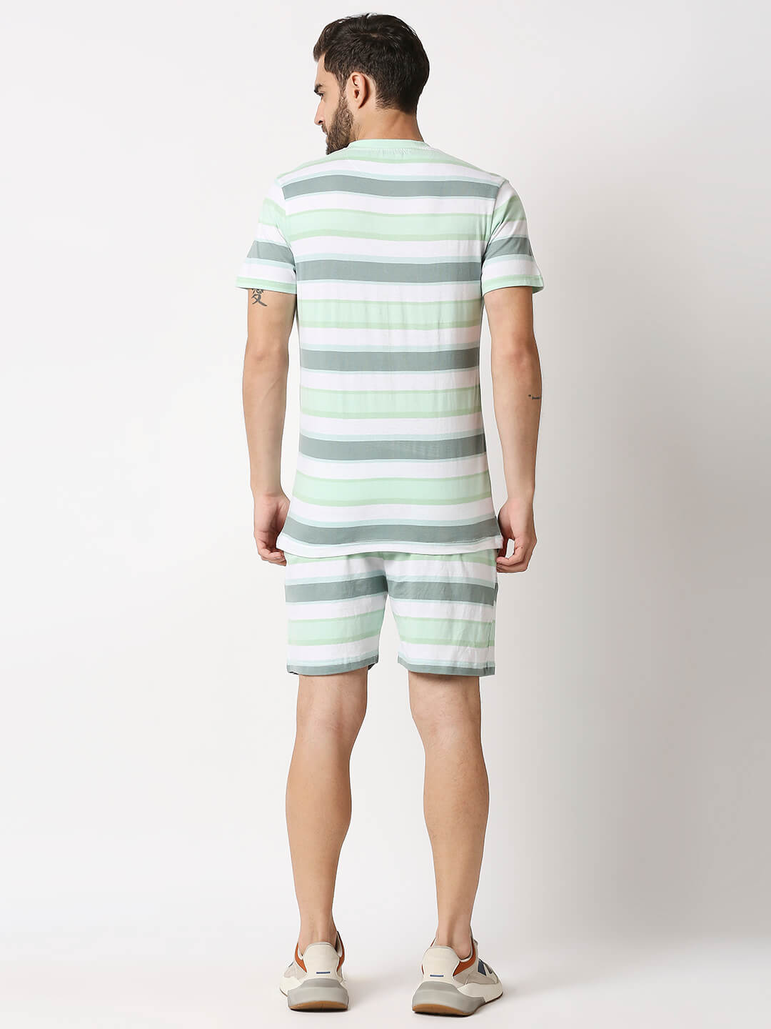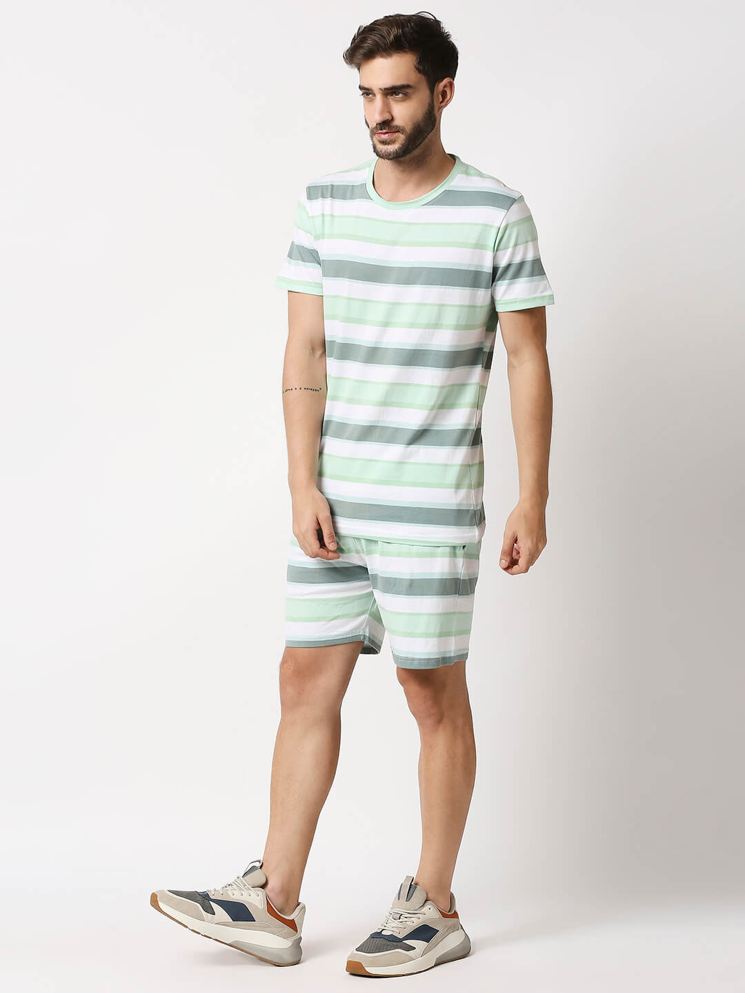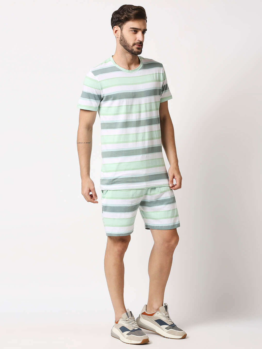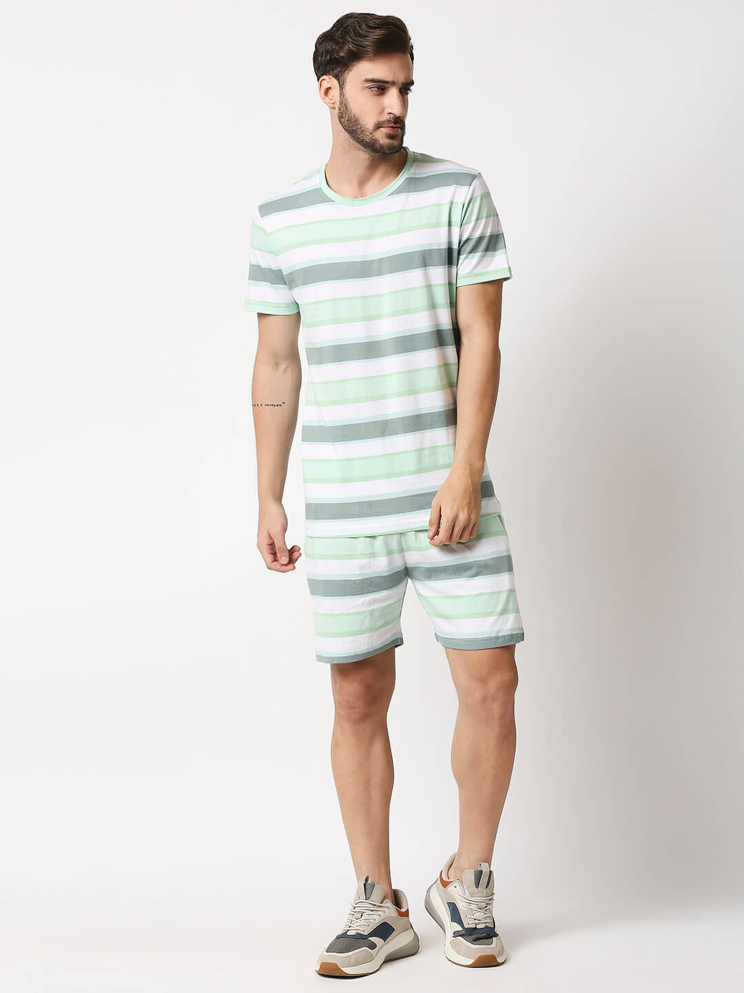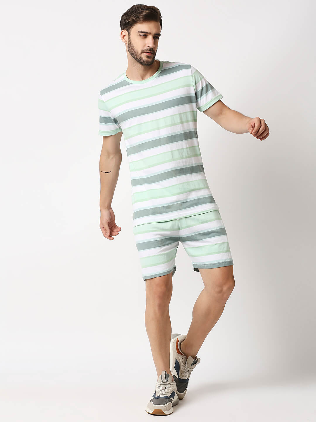 The Manaca Men Stripe Tee with Shorts – White & Peppermint