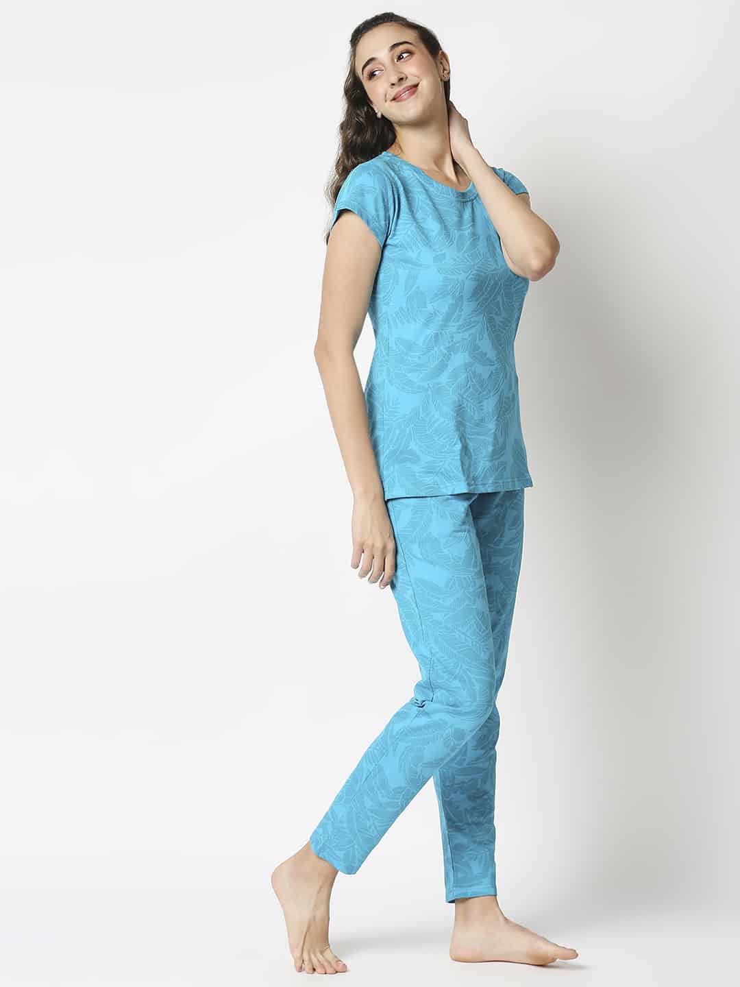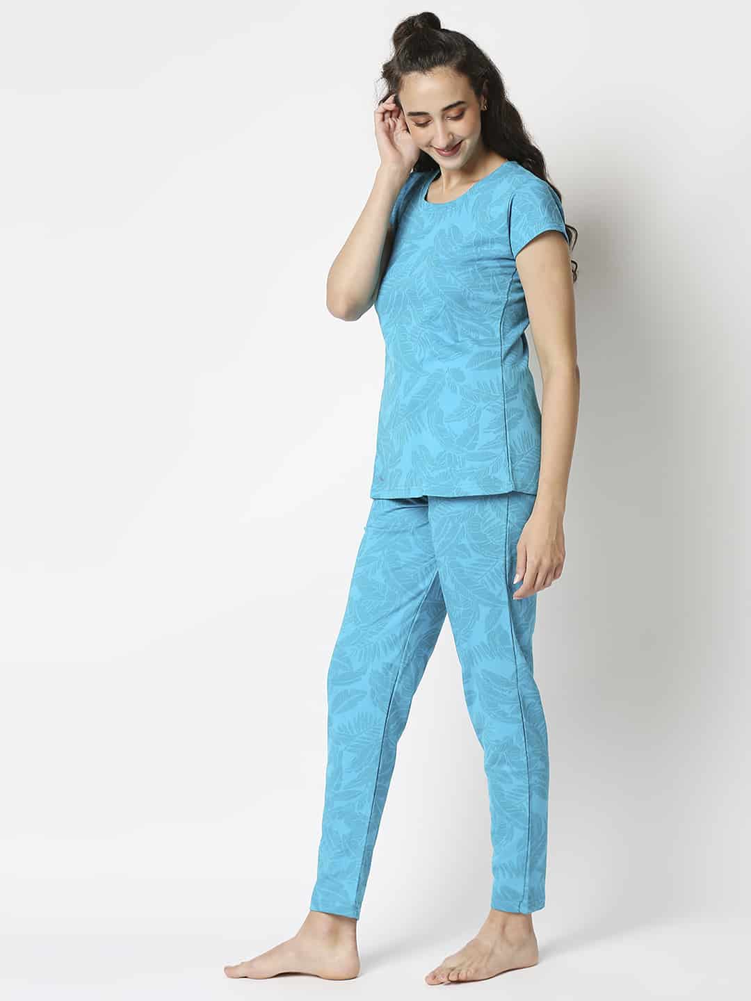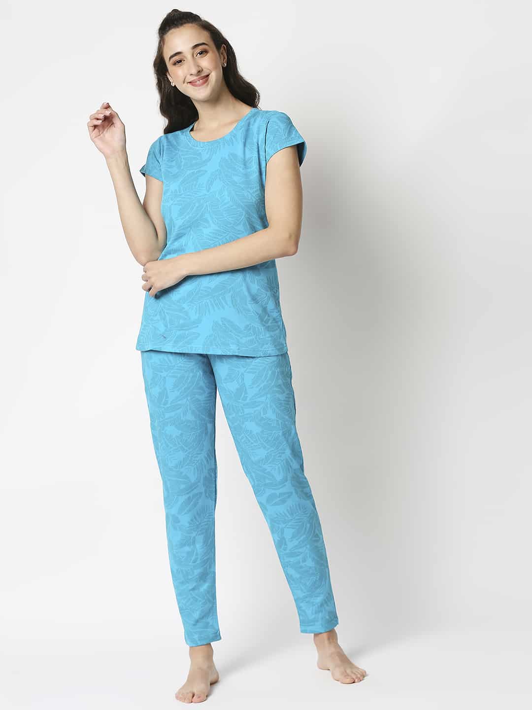 Treat yourself to a Night of sweet dreams in our pure organic cotton top & pyajama Set. Regular Fit. Pyajama bottom has a elasticated waist for your comfort. An all over print nightwear or an printed nightwear