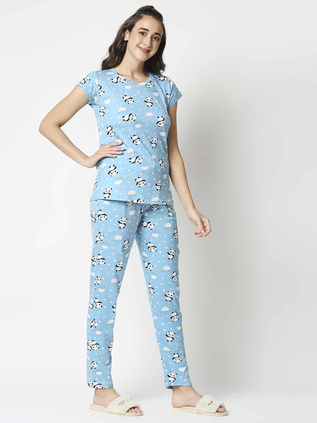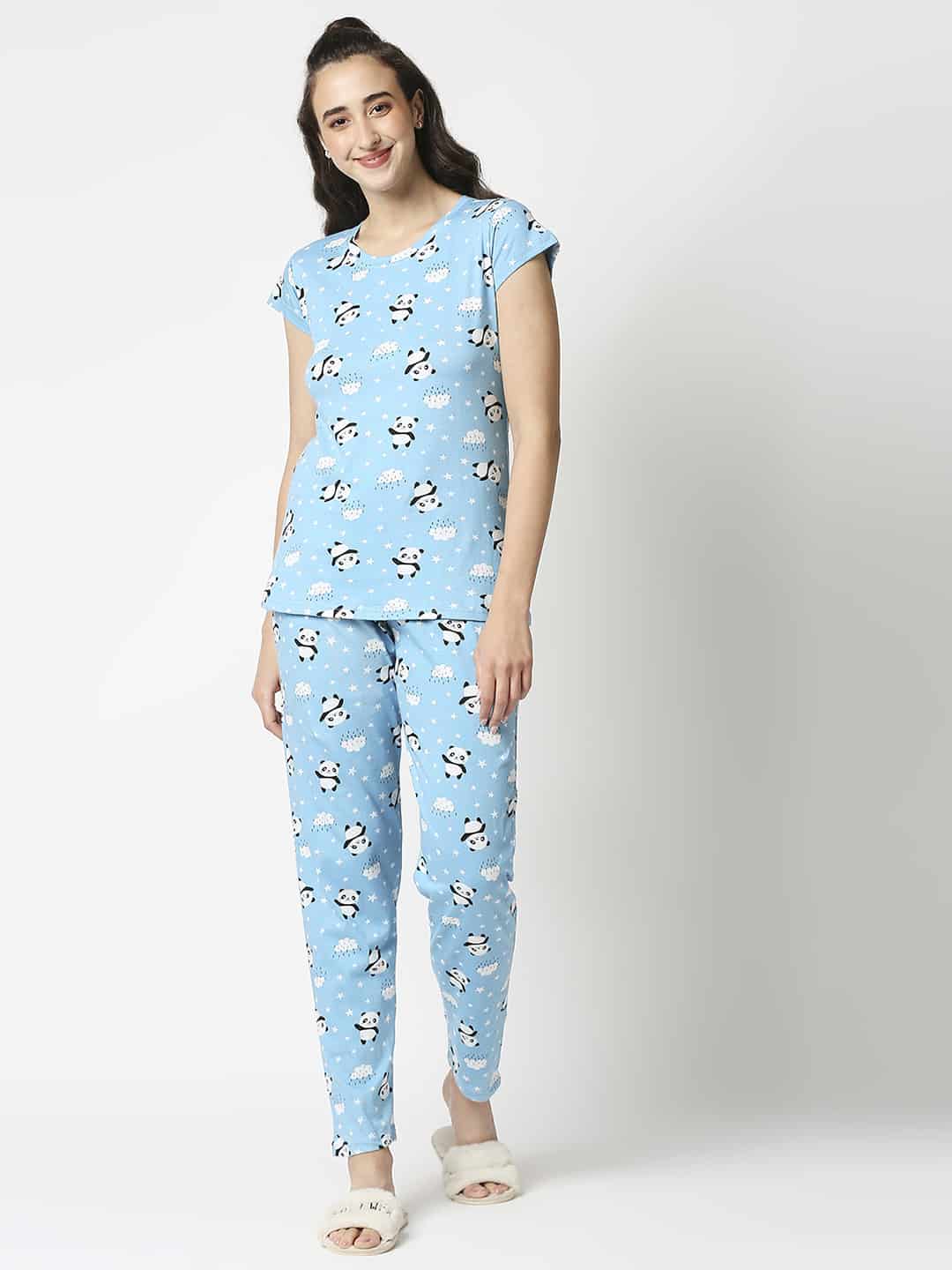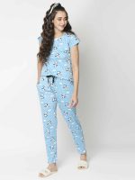 Treat yourself to a Night of sweet dreams in our pure organic cotton top & pyajama Set. Regular Fit. Pyajama bottom has a elasticated waist for your comfort. An all over print nightwear or an printed nightwear