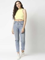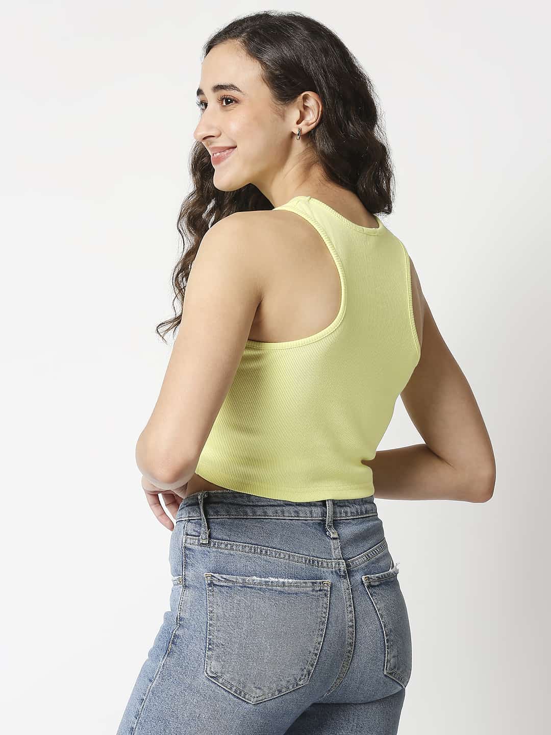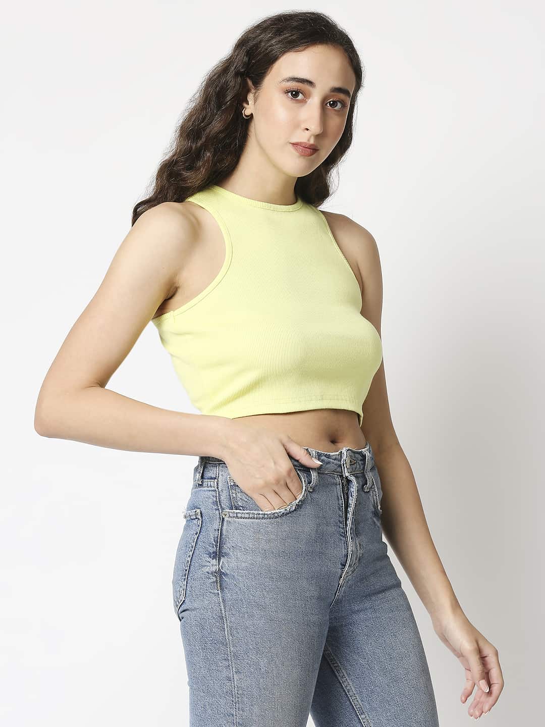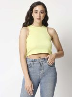 Chic and Sophisticated, this rib crop top is all you need to whip up the elegantly awesome look curated by fine quality cotton rib. A must for your closet!