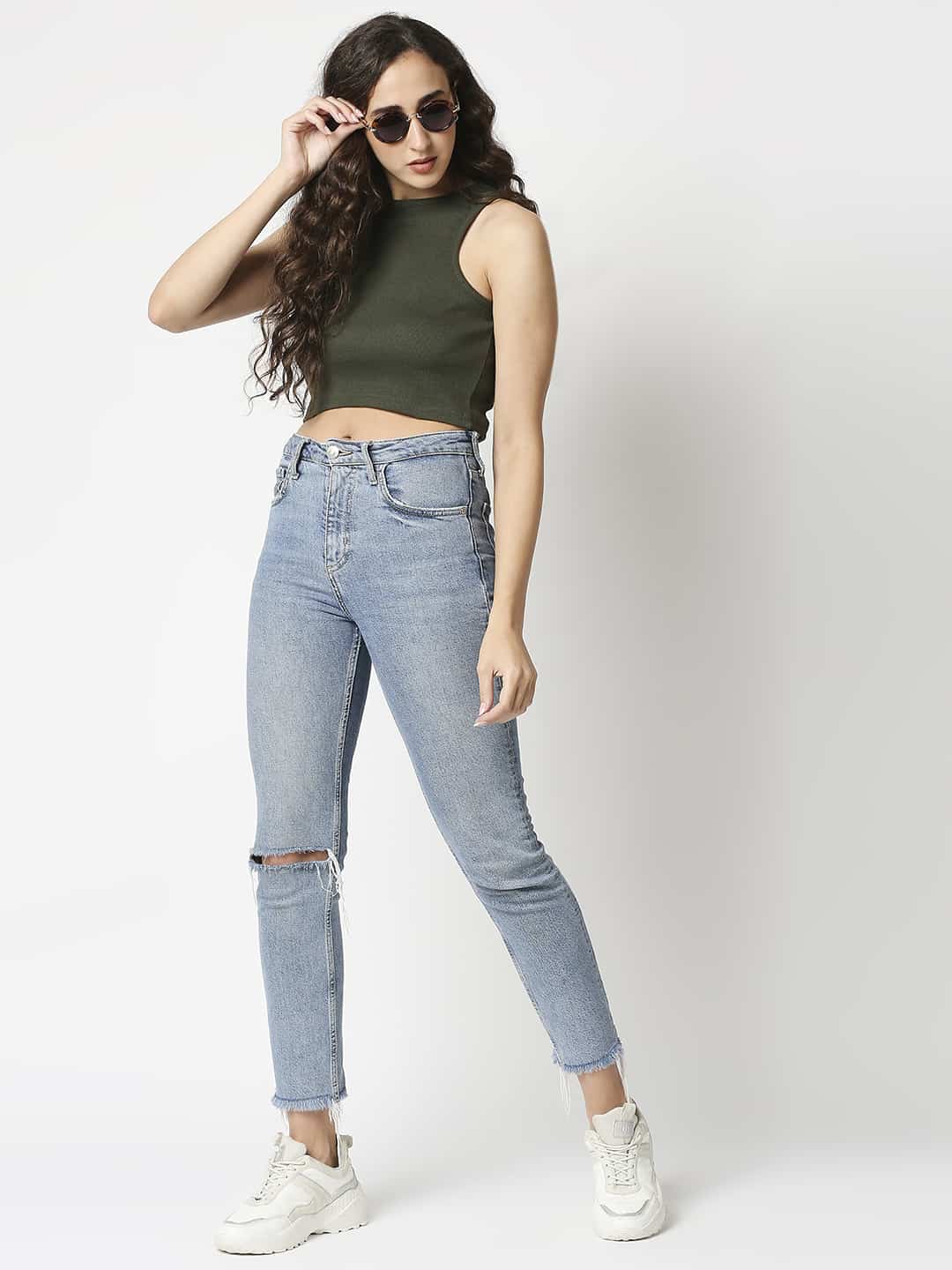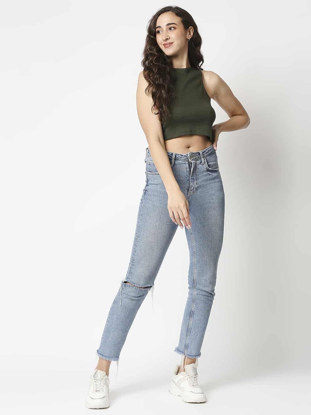 Chic and Sophisticated, this rib crop top is all you need to whip up the elegantly awesome look curated by fine quality cotton rib. A must for your closet!