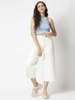 Chic and Sophisticated, this rib crop top is all you need to whip up the elegantly awesome look curated by fine quality cotton rib. A must for your closet!