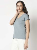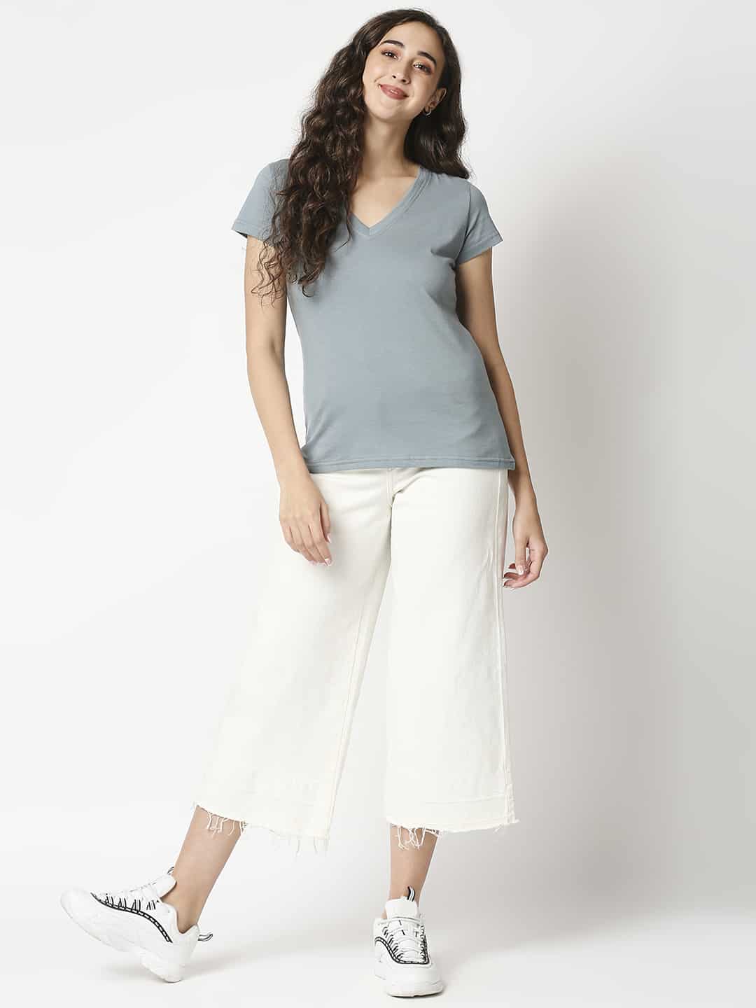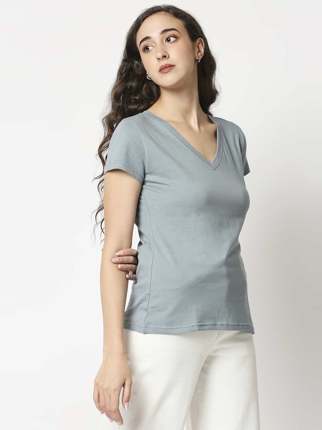 Chic and Sophisticated, The pure organic cotton V-Neck T-shirt is all you need to whip up your elegantly Awesome look curated with fine quality single jersey organic cotton. A must have for your closet.