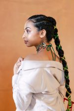 A simple yet unique choker with traditional embroidery and bead details, with Peacock motifs hanging. Lightweight and easy to carry. Provided with thread to tie on the back.