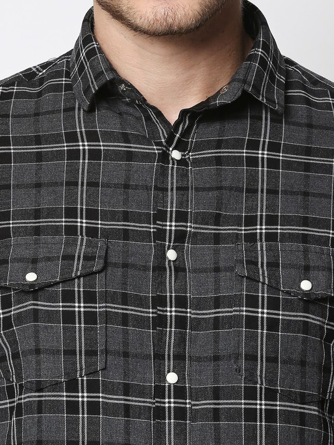 The Manaca Checkered Casual Full Sleeves Shirt – Grey Black Checks